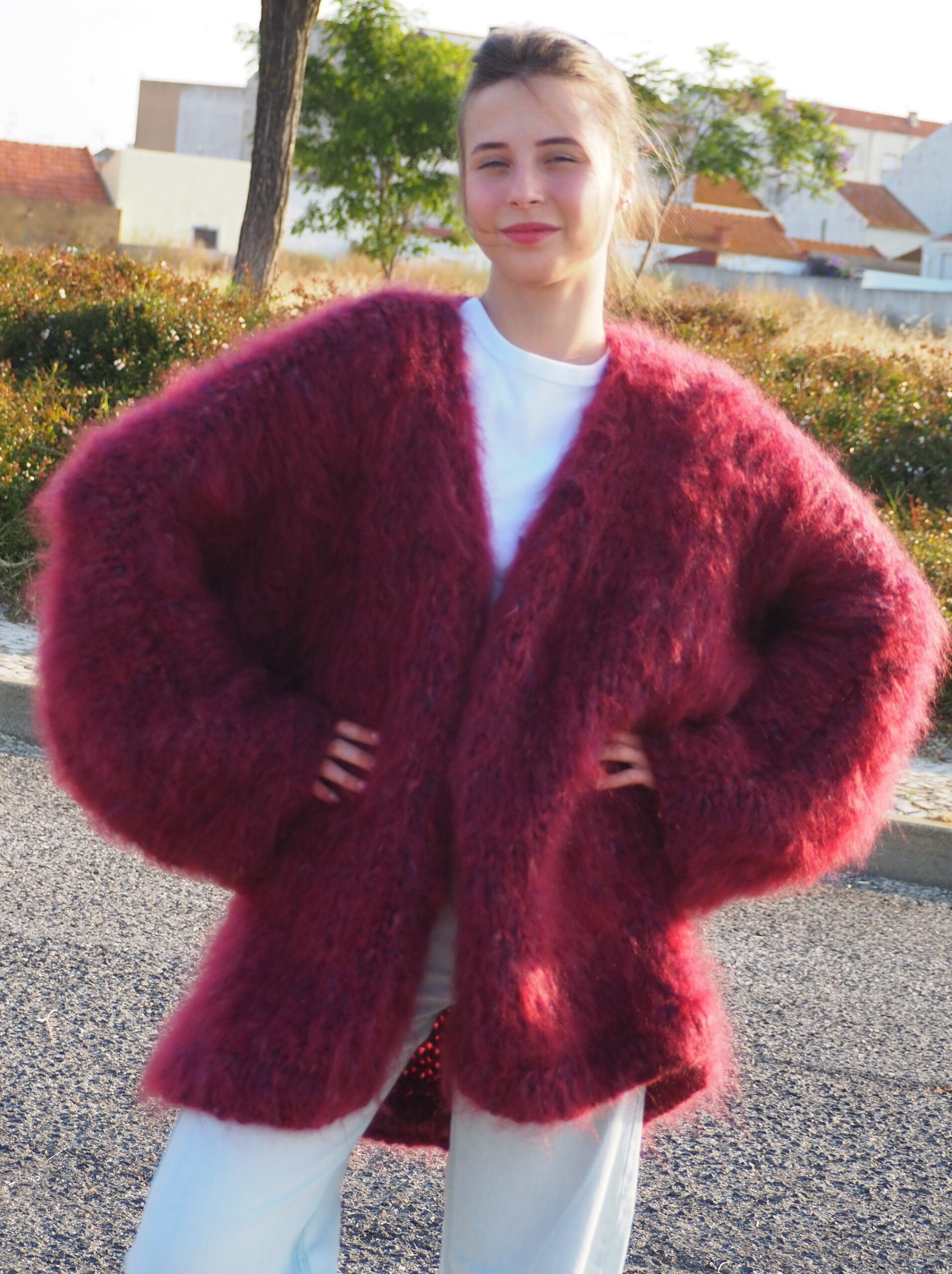 All my Hand Knitted garments are made to very tight specifications, the measures are always true and perfect in terms of symmetry, this means that if you fold one of my sweaters or cardigans you will see the same angles, sleeve lengths and sleeve widths on both sides, this is important because this is the only way you will feel comfortable when you dress a sweaters or a jacket. Additionally there are design tricks and knowledge I got along my career as a professional knitter that are always present in every garment I make and that you as my customer will surely appreciate and enjoy in a sweater or any other kind go knitted garment you buy from me.