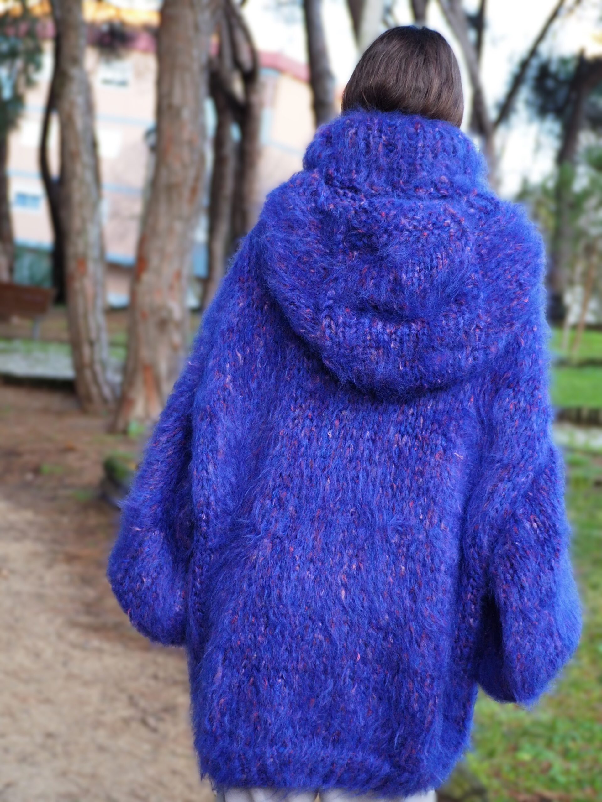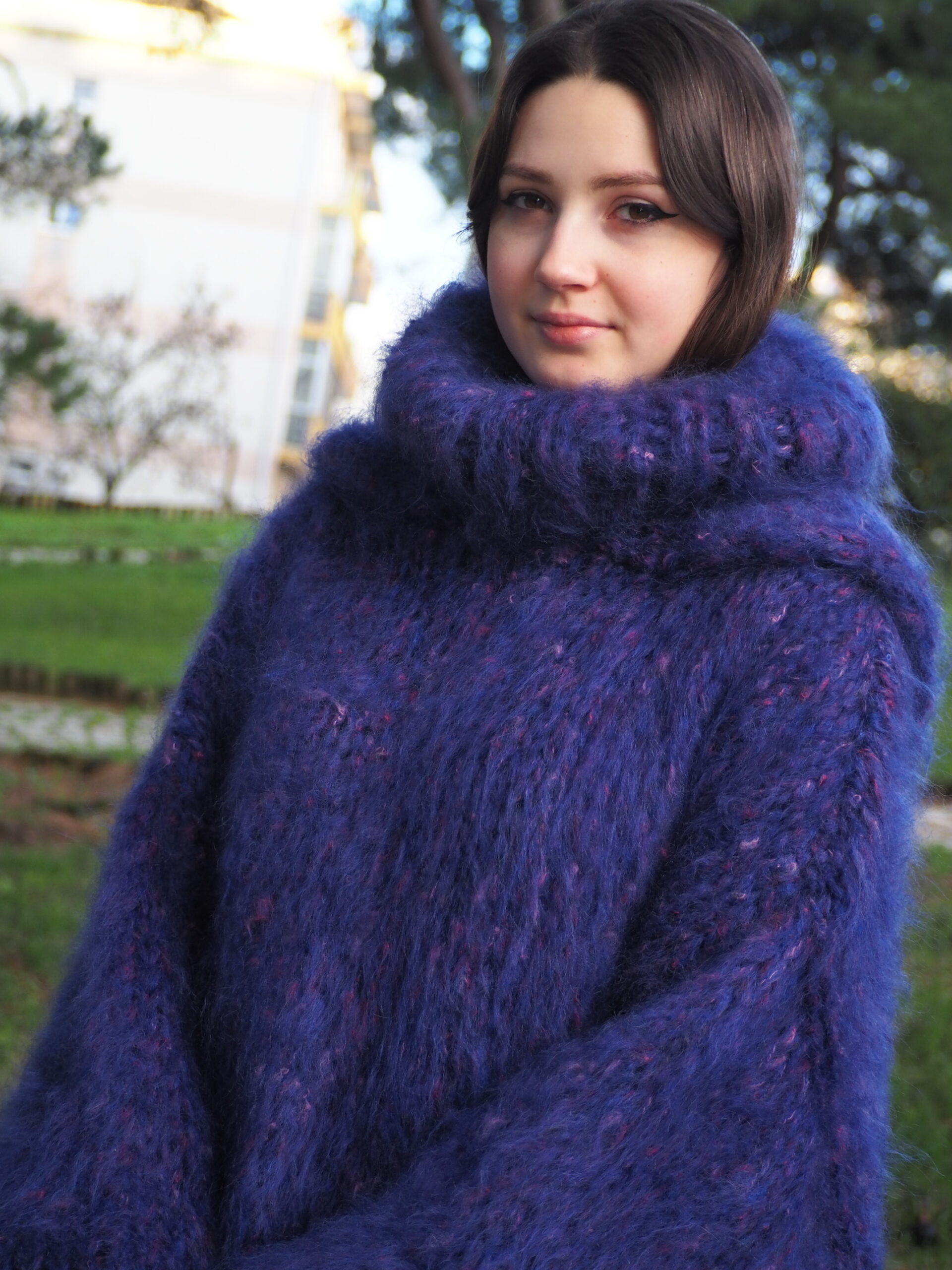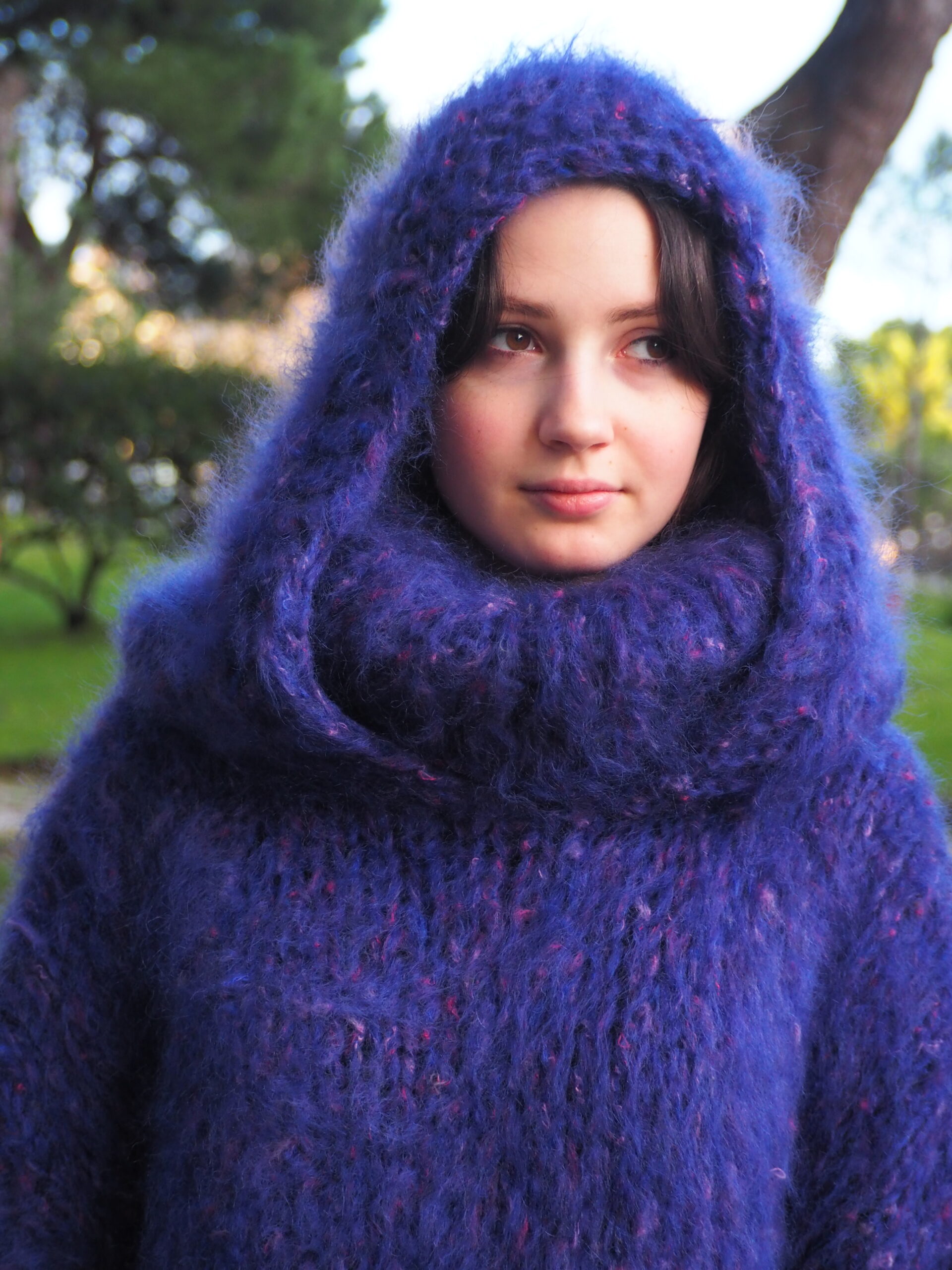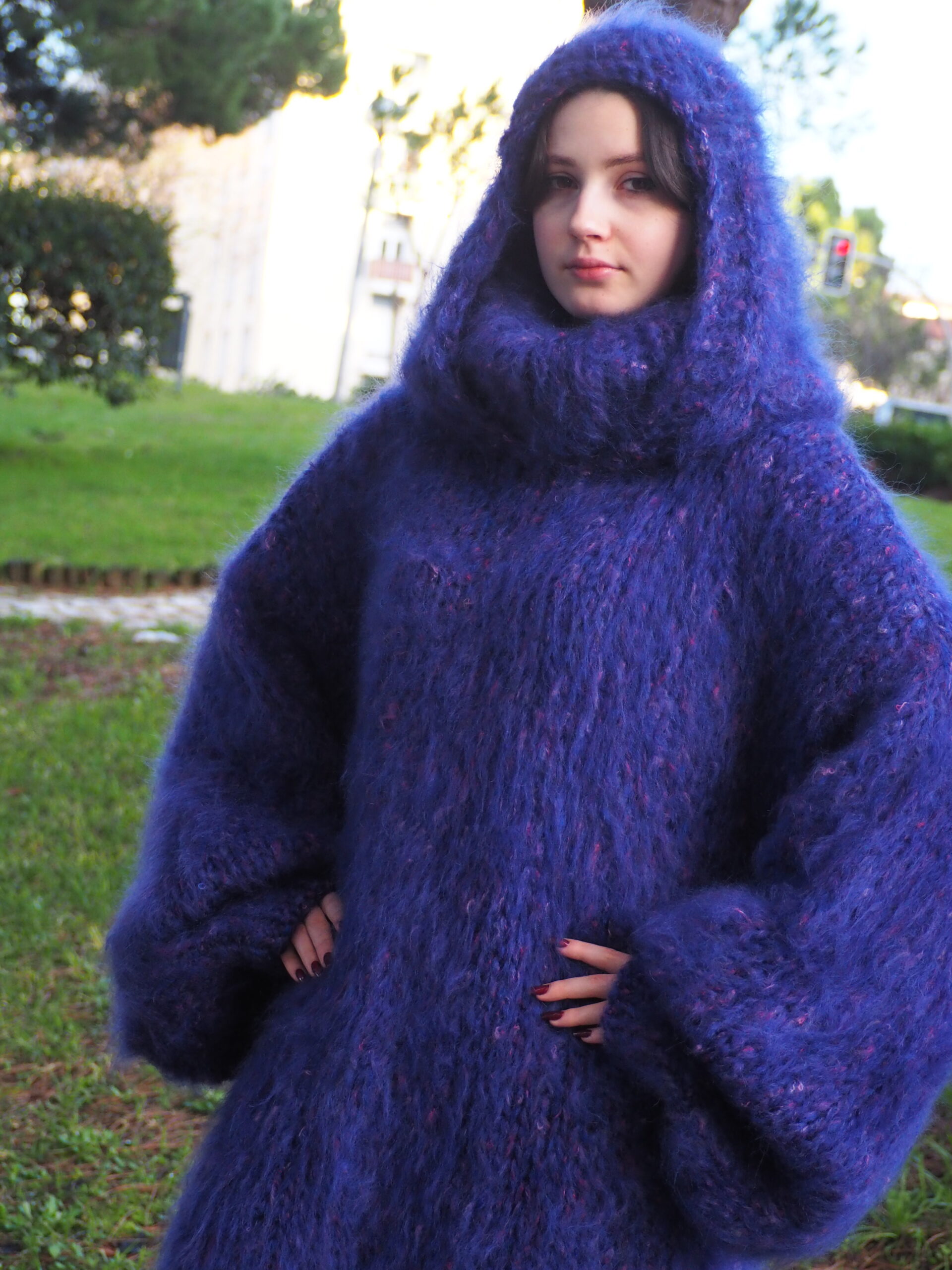 HandKnitted Long hair Mohair Sweater with T-neck and Hood