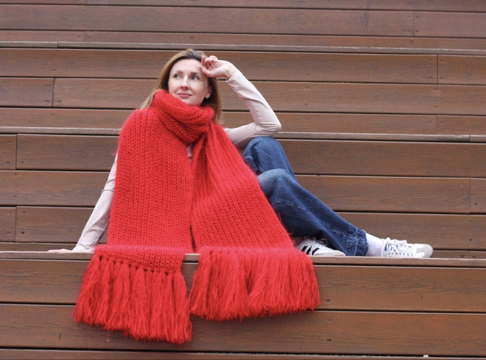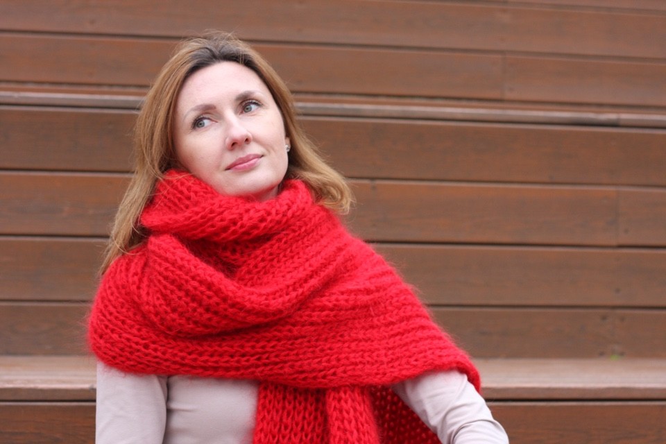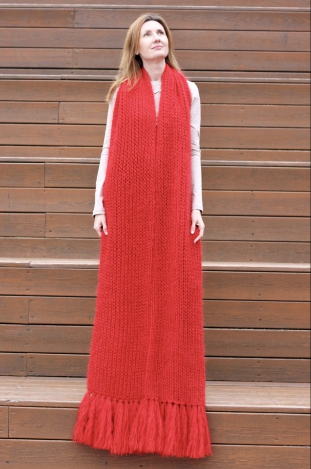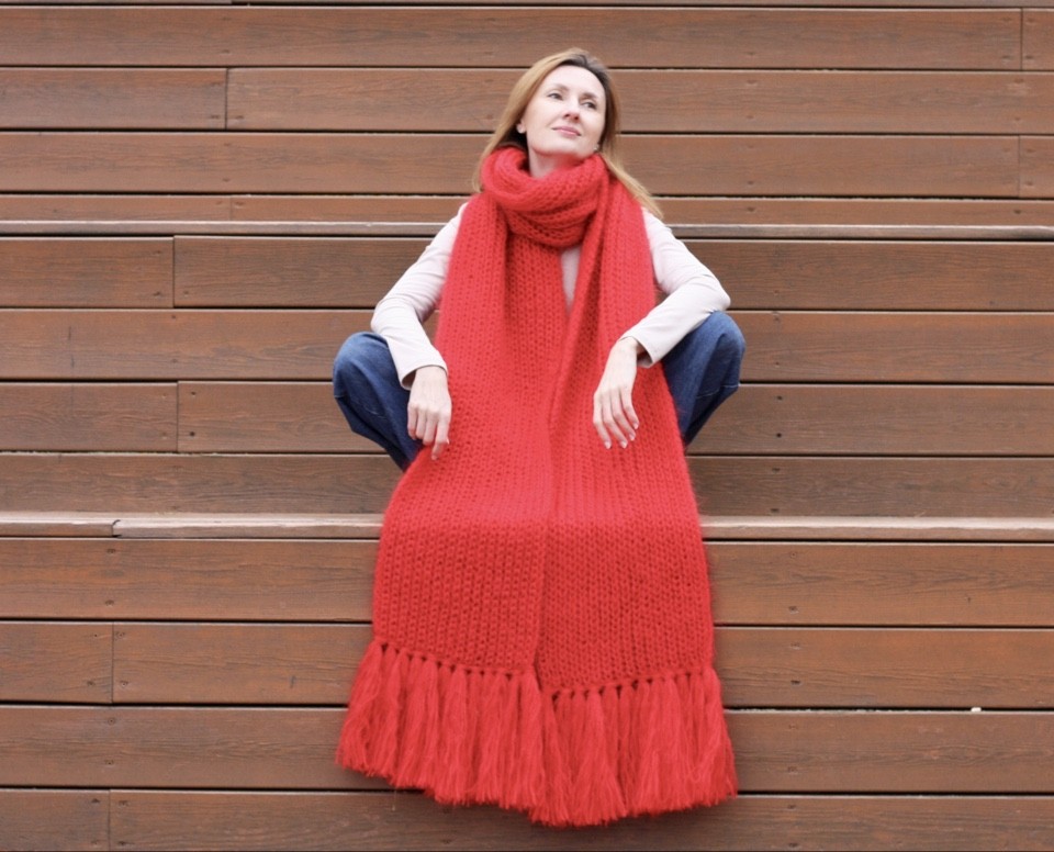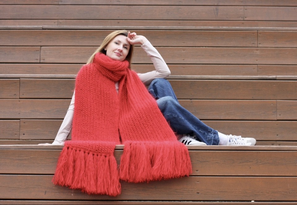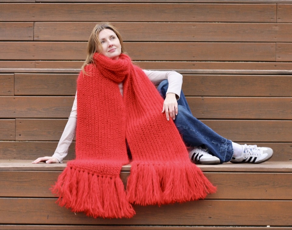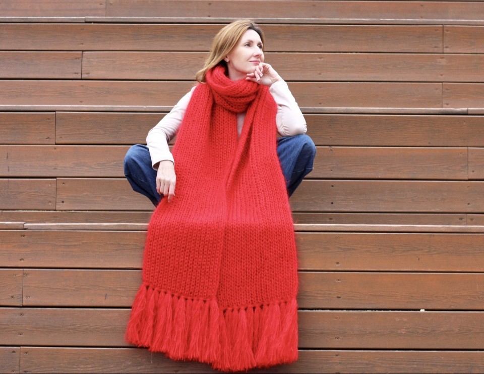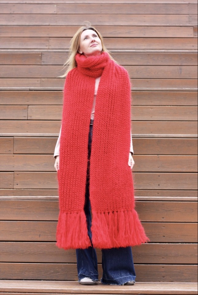Premium Longhair Mohair Scarf Hand knitting Red by Jane Rodas